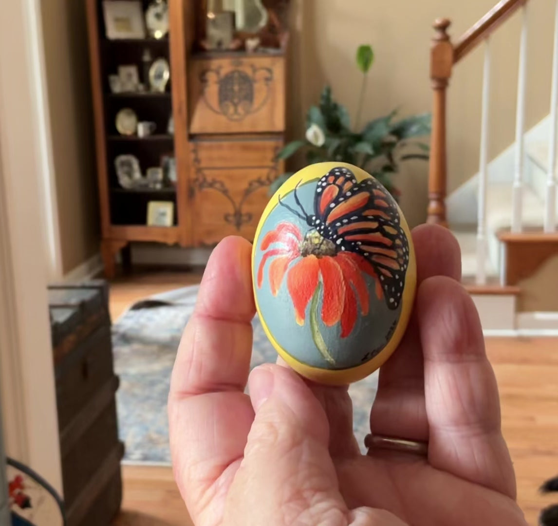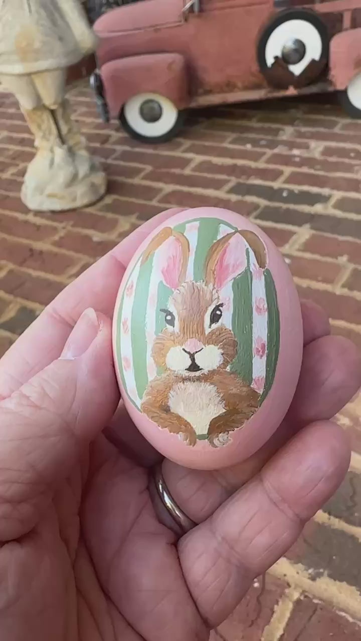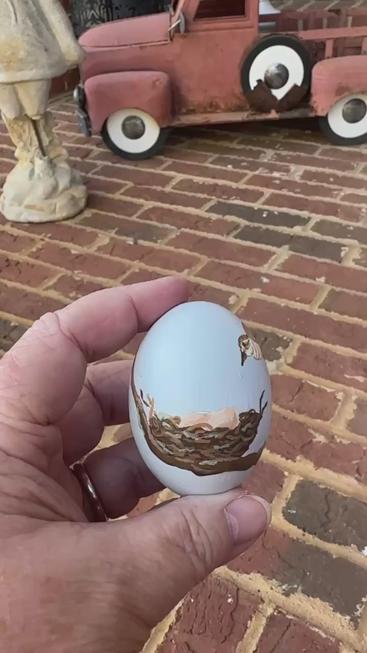 How fun to have little vignette eggs to place in your Spring decor. Most have a front and back design, painted on wooden eggs, 2.5x1.5”.
